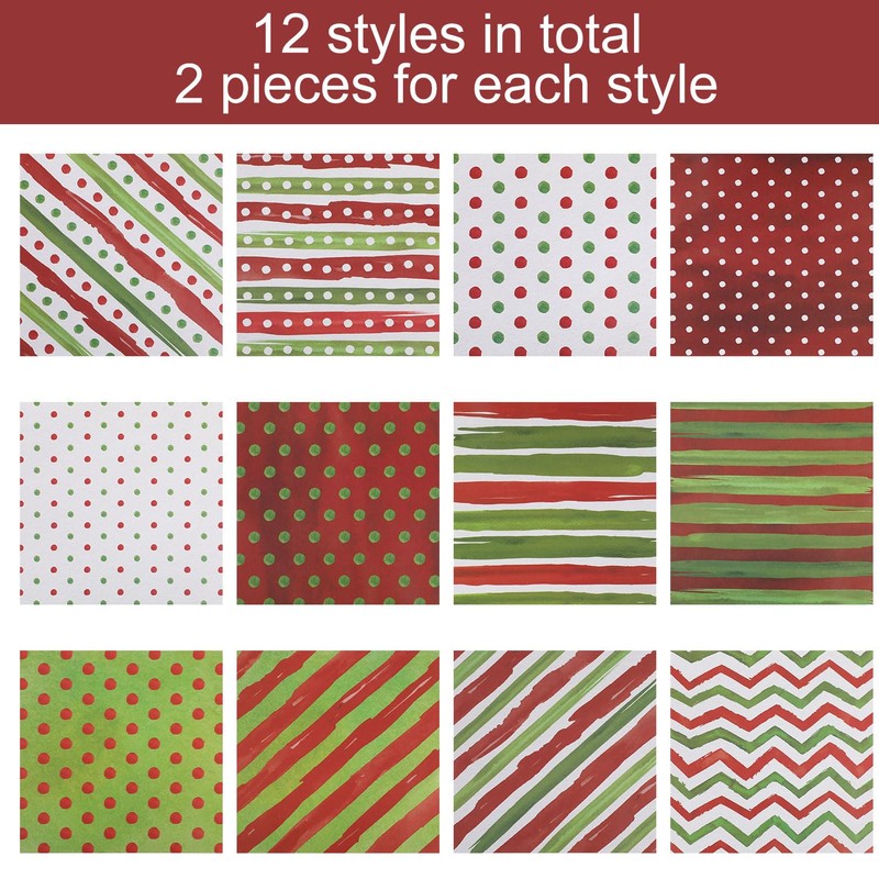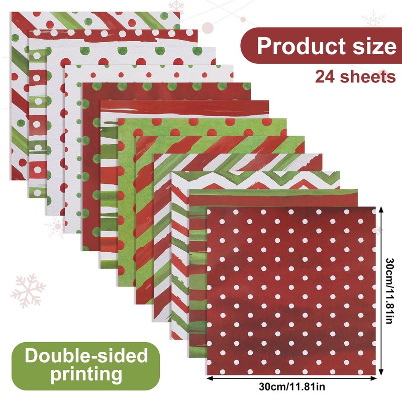- Product Content: You will receive 24 sheets of Christmas pattern paper in 12 designs, enough for a variety of uses.