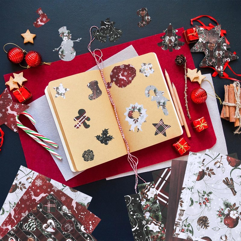 - 【Widely Use】You could use these decorative papers with Christmas designs in this scrapbooking pack to stick to your junk magazines, scrapbooks, collages, albums or art projects without messy glue, perfect for scrapbooks,handmade cards,traveler's journals, diary, photo albums, art journals,collages, paper cuts, etc.