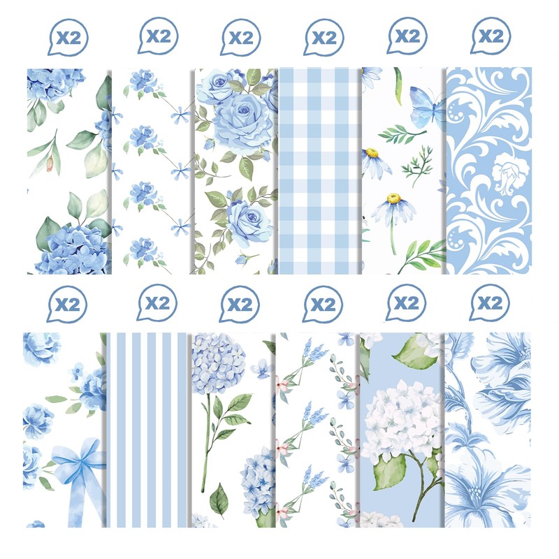 Clipart paper has twelve hydrangea flower themes, with two sheets of each design, for a total of 24 sheets. The patterns are rich and varied and can be decorated freely. The patterns on the front and back are the same, there is no need to distinguish between them. Decorative craft paper is made of double laminated paper, which is not too thick or too thin to achieve the best effect and highest archival quality. It has strong toughness and can be embossed, written, folded and cut as needed. Alternatively, collage multiple patterned papers together to create a decorative piece with aesthetic appeal.