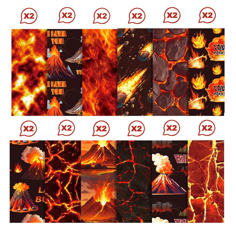 - 12 Unique Lava & Volcano Designs: Unleash creativity with 24 double-sided sheets (12 bold patterns, 2 sheets each) featuring fiery lava flows, molten rock textures, and volcanic ash motifs. Perfect for crafting cards, scrapbooks, or decor that captures the raw power of nature!