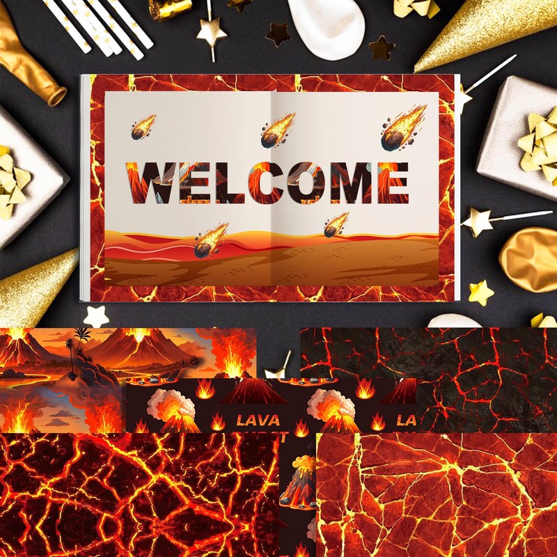 🌋 Fiery Realism: From glowing magma veins to rugged ash textures, each sheet mimics the drama of a volcanic eruption. Perfect for science projects, dinosaur-themed parties, or apocalyptic fantasy scrapbooks.