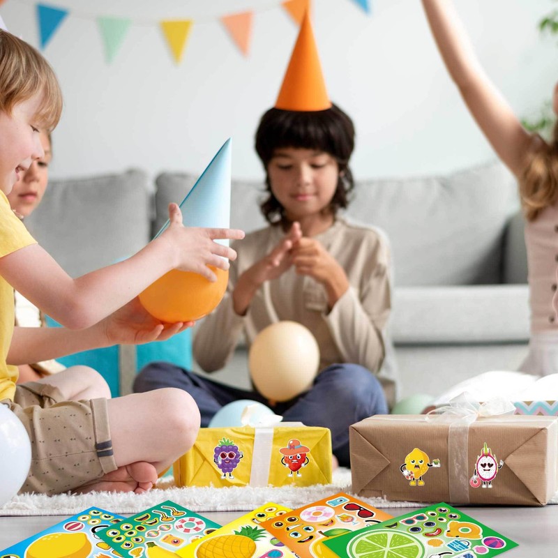 - Great Party Favors: Super cute Make A Face Stickers, great for kids to freely customize and create cute fruit face. Mango, banana, dragon fruit, strawberry, pineapple, lemon and grape stickers has different facial expressions and accessories, enjoy creativity and fun to your party celebration for birthday and house Party, group activity, art class or other activities.