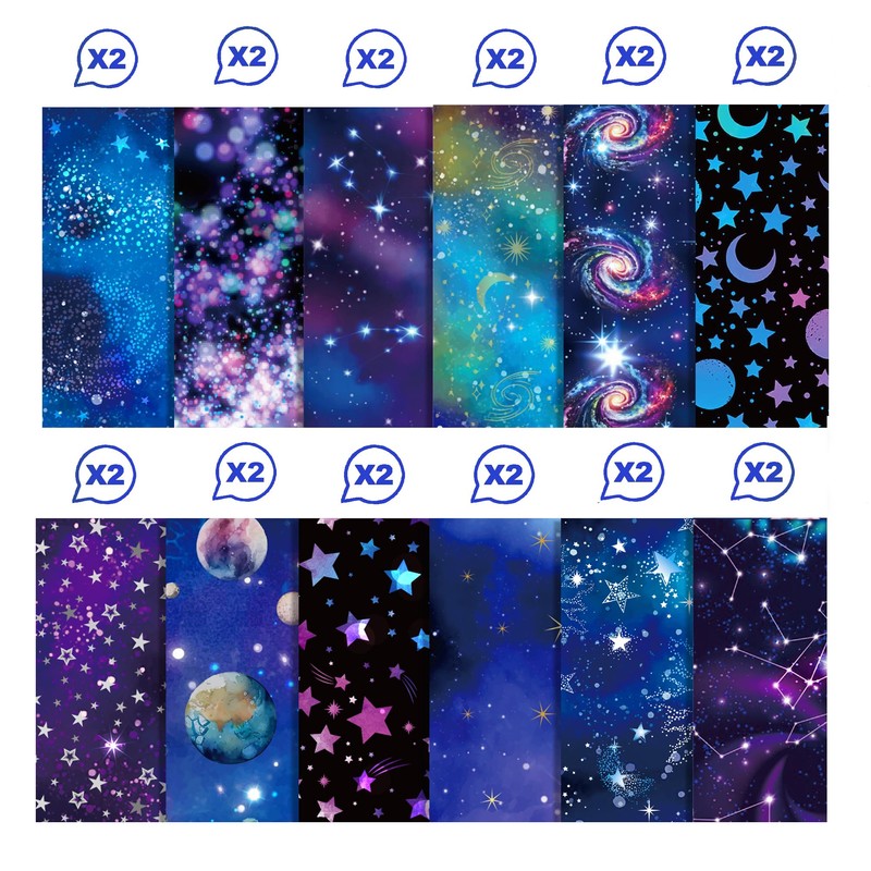 - 🌼【Value Package】: 24 pieces 30 x 30 cm starry sky pattern paper.Our CC HOME set includes 24 sheets of paper in 12 different designs, each design has 2 sheets, enough to meet your needs for crafts. To all sizes of gift boxes, and they can be cut to the right size at will, easy and convenient.
