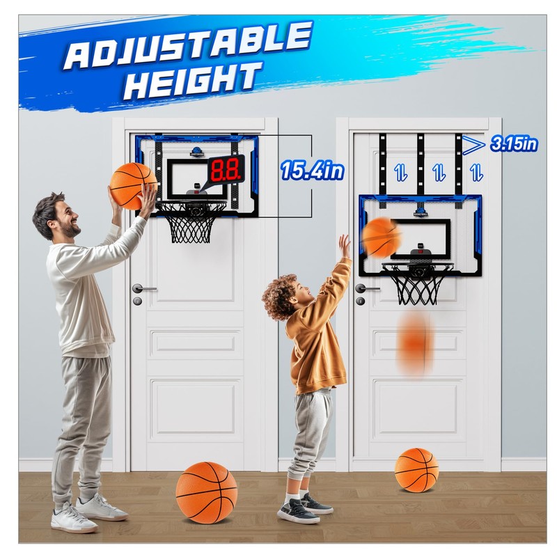 24" x 16" Indoor Large Basketball Hoop Toy - Upgraded Adjustable Height Basketball Hoop Over The Door with Scoreboard/2 Balls, Basketball Toys Christmas Birthday Gifts for Kids & Adults(Blue)