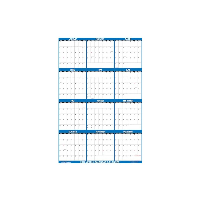 - LARGE 2026 CALENDAR BLOCKS: Each Wall Calendar features large blocks for scheduling and notes. Vertical side blocks are 1.5" x 1.25" - Horizontal side blocks are 1.25" x 1.25". Bold and large print with bright white background allows for easier viewing and reading at-a-glance.
