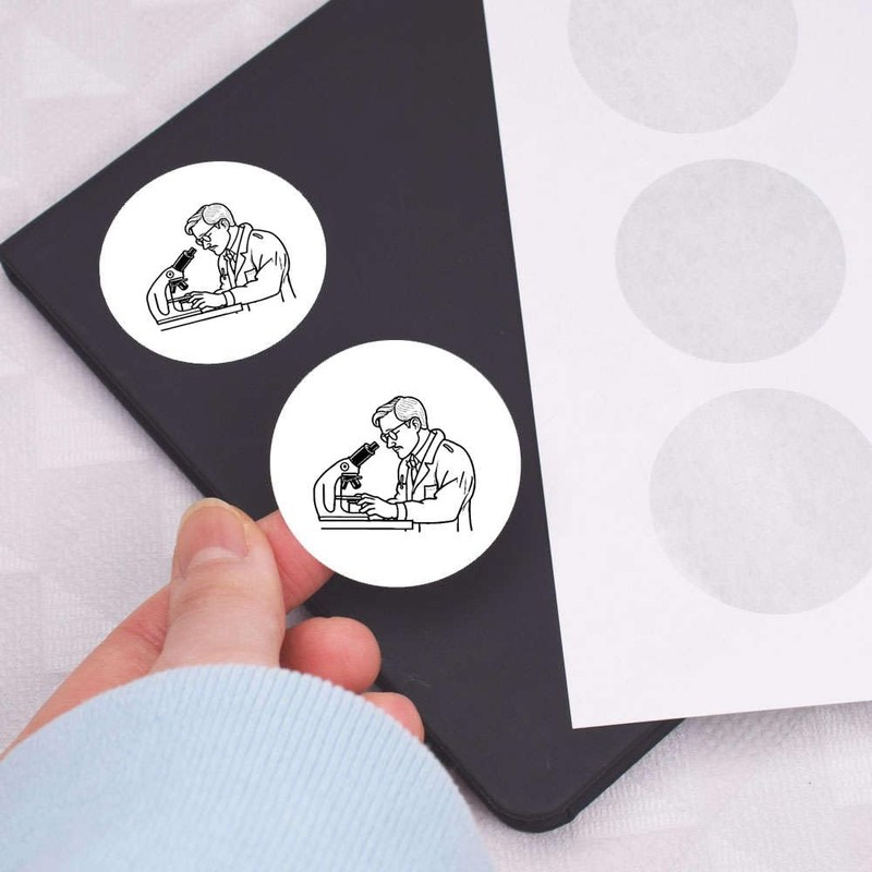 24 x 40 mm 'Scientists examining a microscope slide' stickers/stickers (SK00063026)