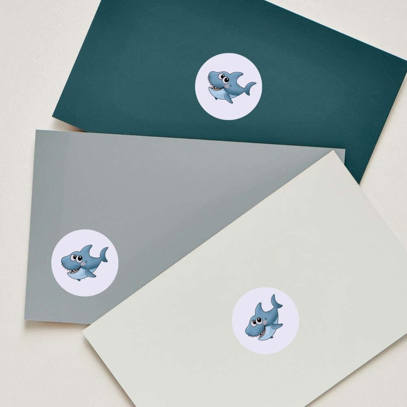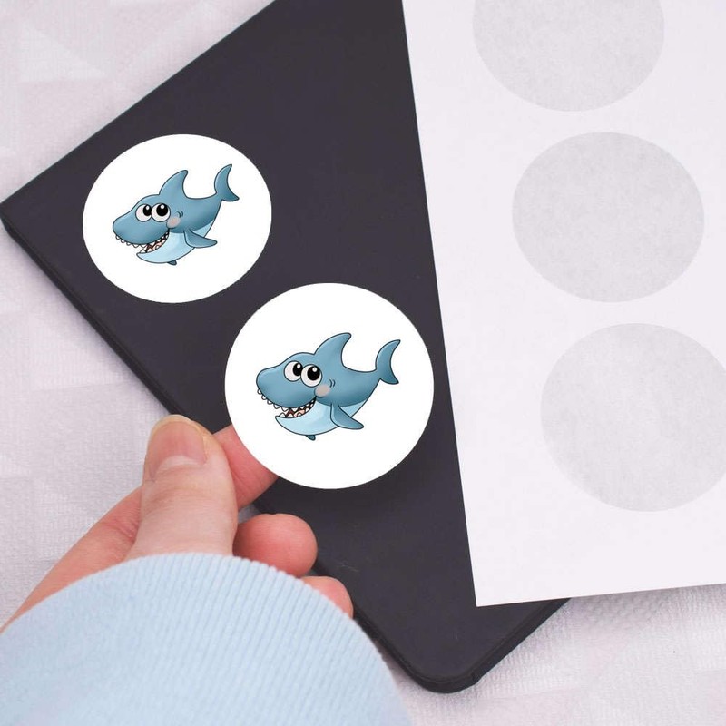 24 x 40mm Round 'Cute Cartoon Shark' Stickers (SK00066728)