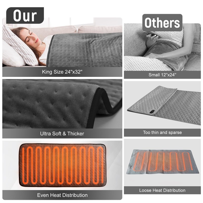 24''x33'' XXXL Heating Pad for Neck/Shoulder/Muscle Pain - 6 Heat Settings, 4 Timer Modes, Moist Dry Heat Options, Auto Shut Off