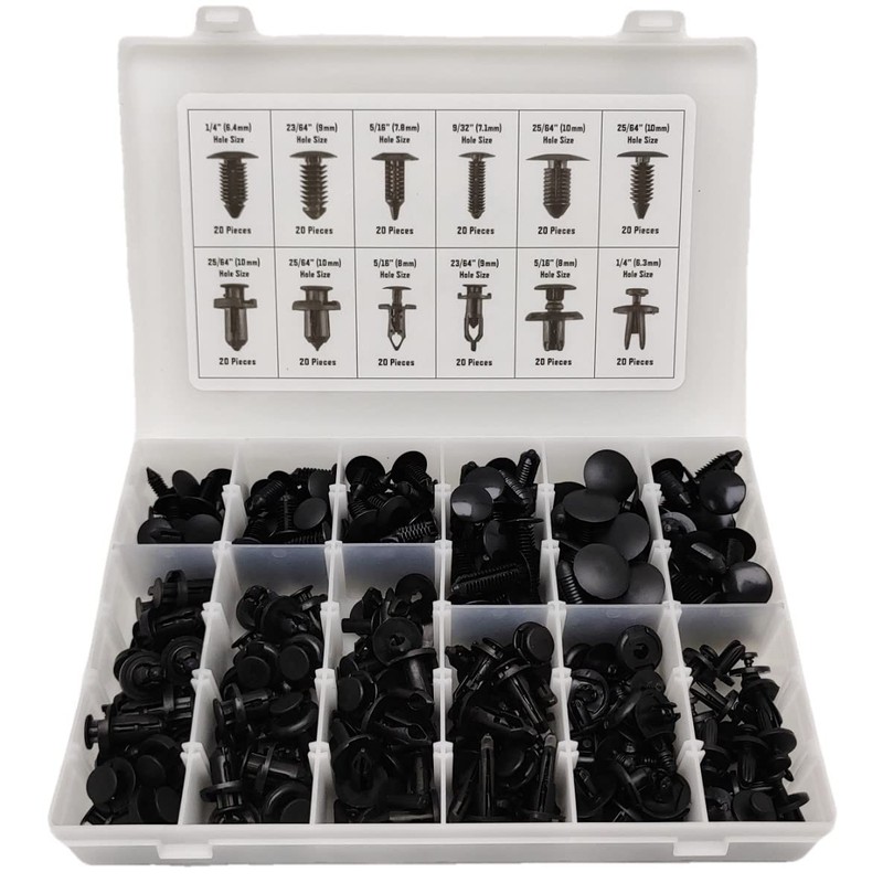 240 Piece Plastic Automotive Fastener Assortment Kit, Body Trim Rivets Push Connectors