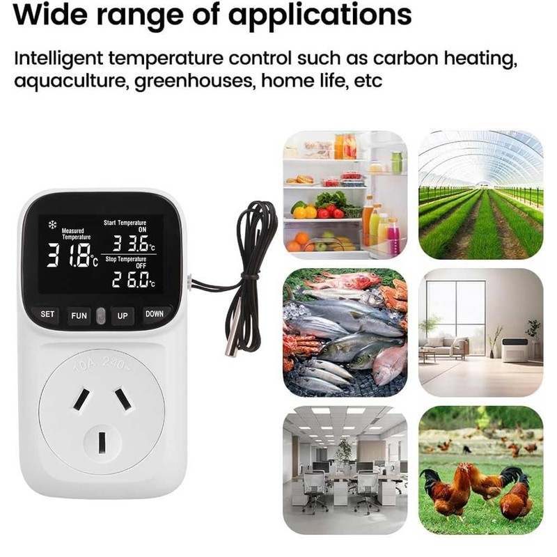 • 【Reptile Thermostat Wide Range of Applications】 This thermostat socket with probe is widely used for glass house, greenhouse,incubator,terrarium, refrigerators, fermentations, heating mat and other temperature controlled systems.