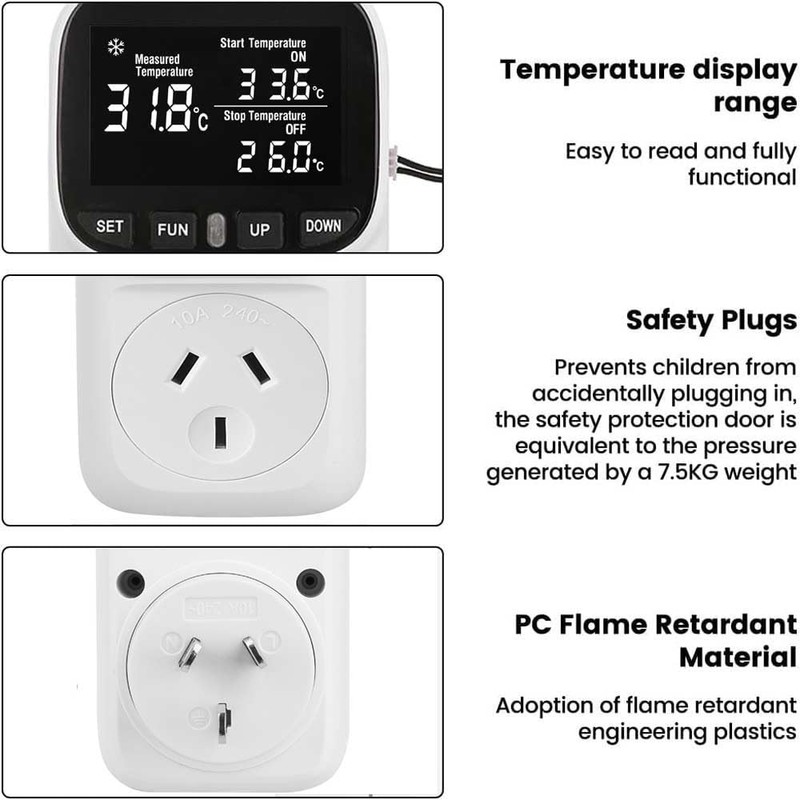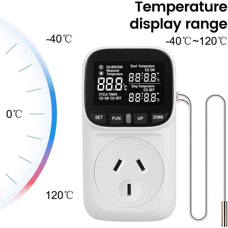 • 【Precise Digital Temperature Controller】Thermostat outlet:-40℃~120℃;plug in thermostat function with ±1% accuracy. Set the start and stop temperature to make the heater or cooler operate as programmed.