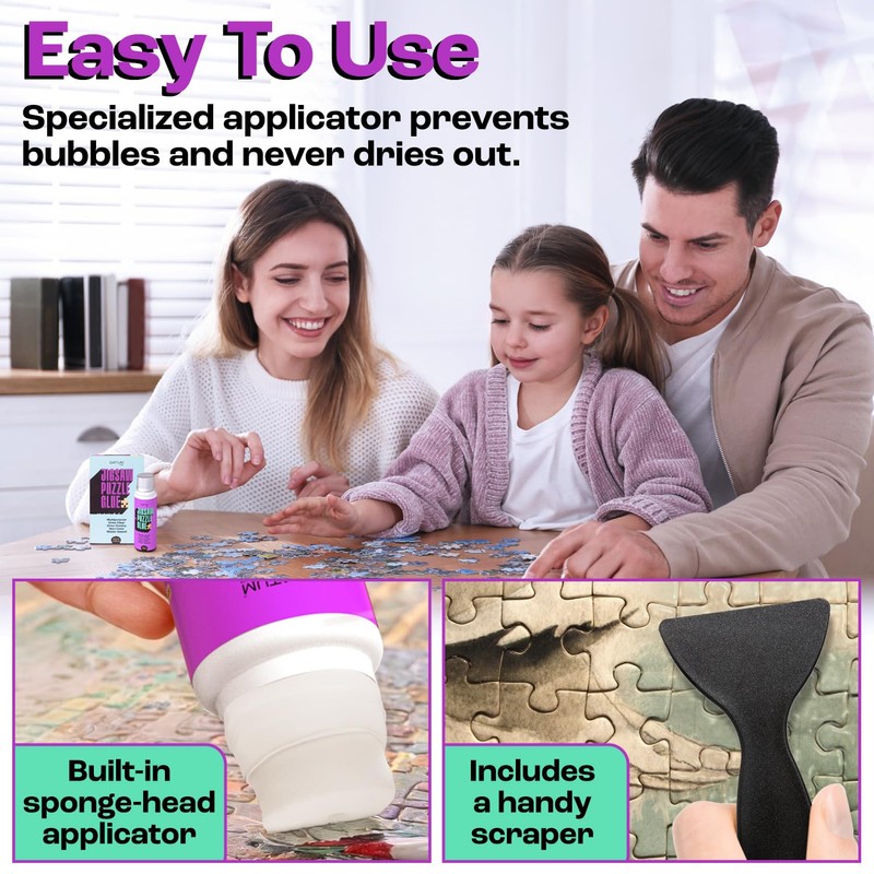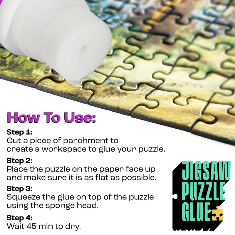 Crystal-Clear, Shiny Finish: Our premium puzzle glue dries crystal-clear, preserving your puzzle's vibrant colors and intricate details without any cloudiness or yellowing, so your masterpiece looks as beautiful as the day it was completed.