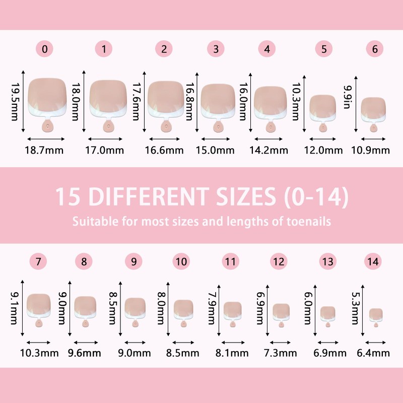 - Versatile and Stylish Toe Nails Tips: French tip acrylic toe nail press ons beige come in a variety of sizes to fit different toe shapes and personal preferences. French tip toe nails glue on short is particularly popular for its modern and trendy look. French tip toes press on nails beige are ideal for women who want to enhance their toe beauty without the time-consuming process of traditional pedicures. French tip presson toenails for women add a touch of sophistication and class, white french tip toe press ons square suitable for both casual and formal occasions.