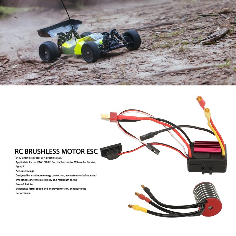 2430 Brushless Motor 35A Brushless ESC Accurate Brushless Motor ESC Set for Traxxas 1/16 1/18 RC Car 7200KV