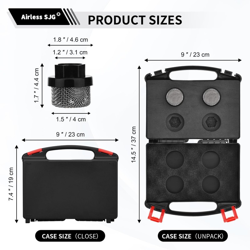 • Packahe Includes: 2 pcs 246385 Airless Paint Sprayer Inlet Strainer and a storage box