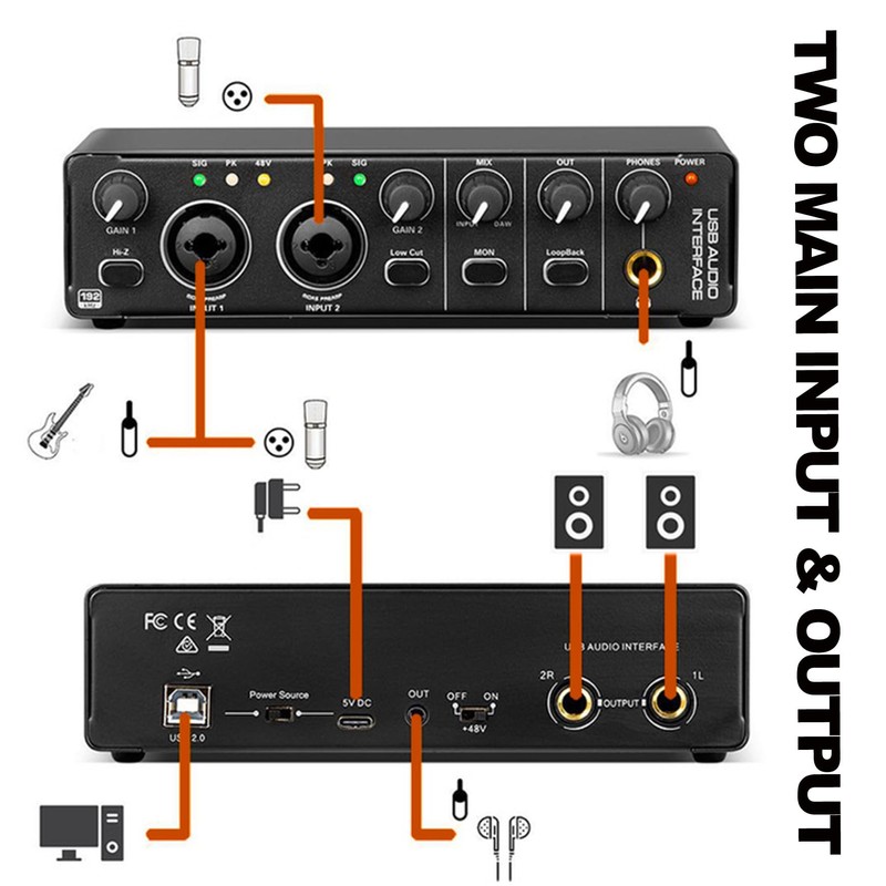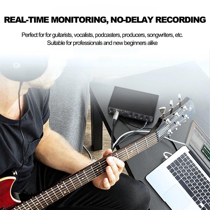 - 2 In 2 Out: USB audio interface designed with universal 6.35mm/XLR inputs and 6.35mm outputs for most musical instruments, microphones, and speakers, great for guitarist, vocalist, podcaster, producer, songwriter...