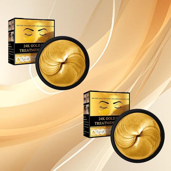24K Gold Under Patches, Anti-Aging Infused with Collagen and Hyaluronic Acid - Reduce Dark Circles, Puffiness, and Wrinkles - Variation: 2 boxes