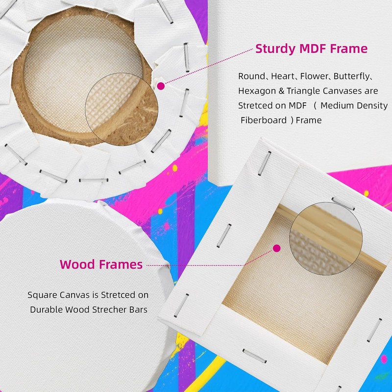 - 💎【 Sturdy and Sturdy 】 Our Special-shaped Canvas Frames are Made of MDF Frames, That are Durable and Warp-resistant, As Smooth and Tough as Pine Strips, Each Canvas is Tightly Stretched and Back Stapled to a MDF frame, Making the Edges Neat. ideal for framing or hanging on the wall. Meanwhile,Our Canvas Painting Supplies offer Great Quality for a Great and Affordable Price