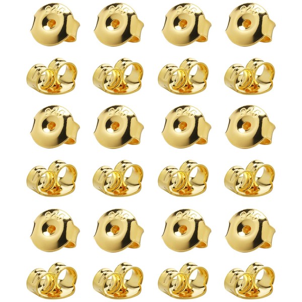 24PCS 18K Gold Plated 925 Silver Earring Backs Replacements, Hypoallergenic Earring Backs for Studs, Secure Ear Locking for Stud Earrings Ear Nut for Posts, 6mm