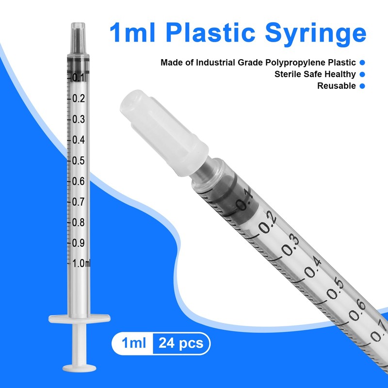 • 24 PACKS OF 1 ML SYRINGLES: Contains 24 pcs of 1ml syringes without needle, individually sealed and packed without needles, enough for use or replacement.
