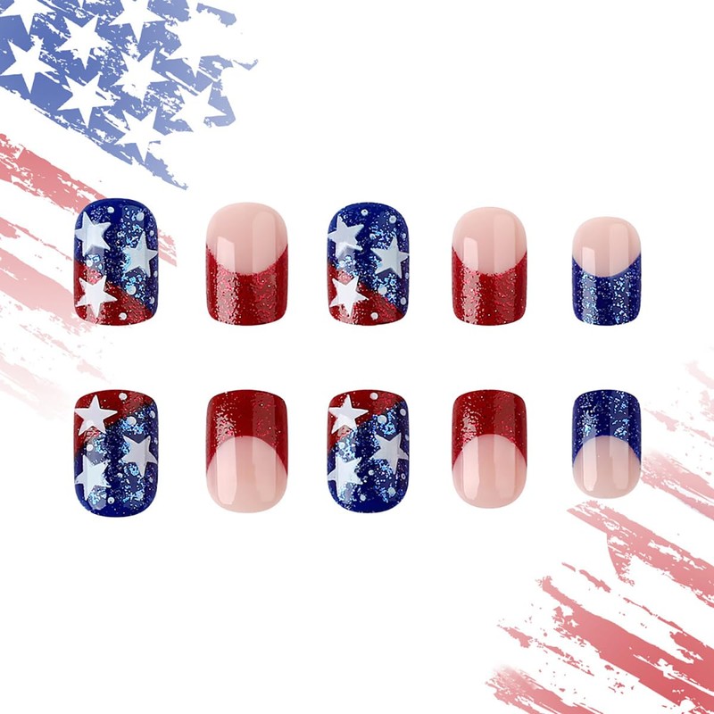- Convenience: Glitter french tip press on nails can help you save time while decorating your nails better.Change your favorite nail design anytime, just a few minutes, you can use nail glue to stick these independence day stick on nails onto your nails