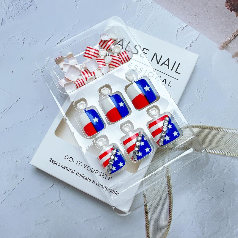 - Patriotic Design: These patriotic acrylic nails press on with rhinestone designs, perfect to enhance your sense of fashion. The short square design fits most women, allowing you to show fashion style every day