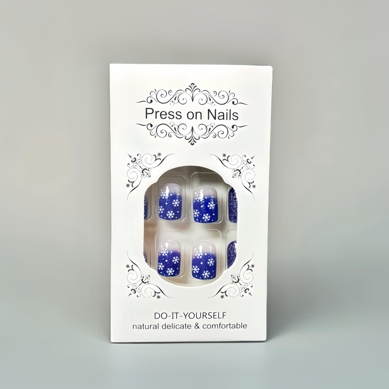 1.Snowflake press on nails are easy to use, it only takes a few minutes to complete a manicure.