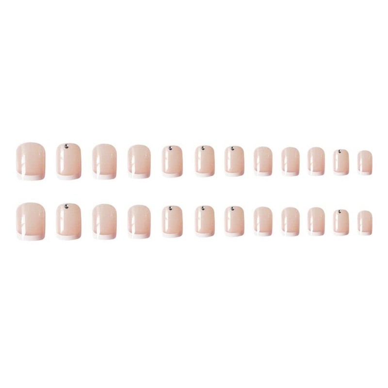 24pcs/box Removable White French Square Head False Claw Wearable Rhinestone False Nails Full Cover Nail Tips Press On Nails
