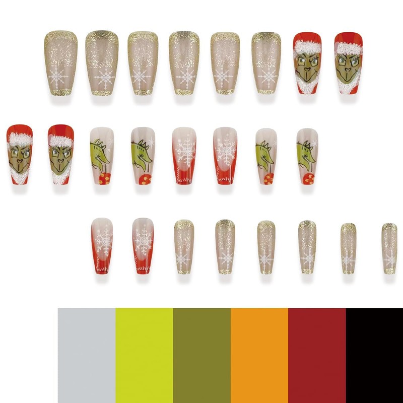 - Package Contains:24 Pcs Christmas Press on Nails 1pcs nail file,24pcs jelly glue sticker,1pcs wooden stick for removing false nails.You just need to choose a fake nail that fits your finger size and DIY the nail shape you want