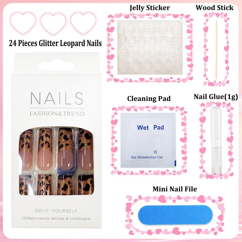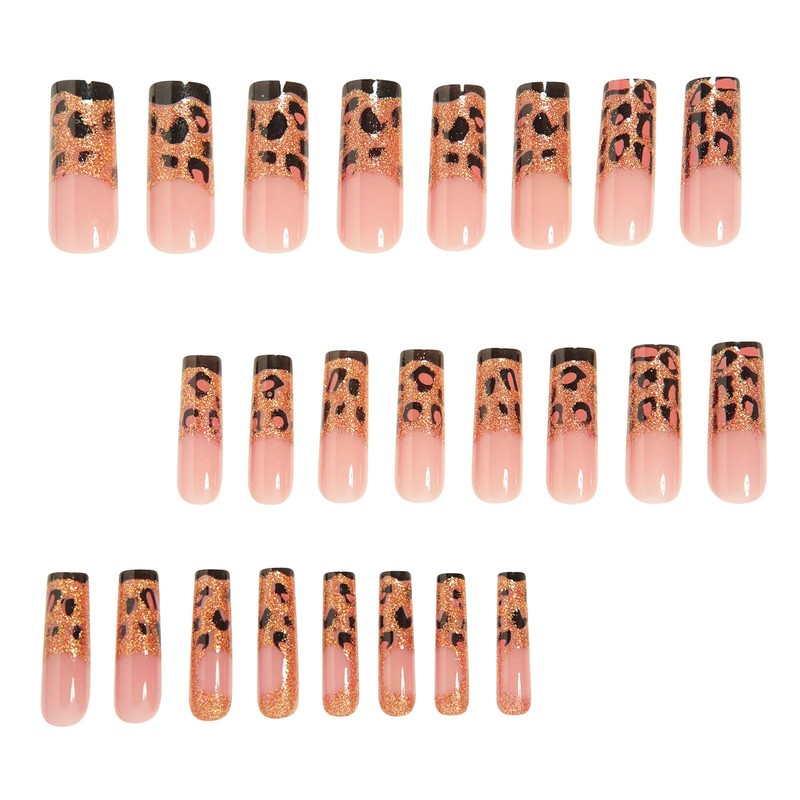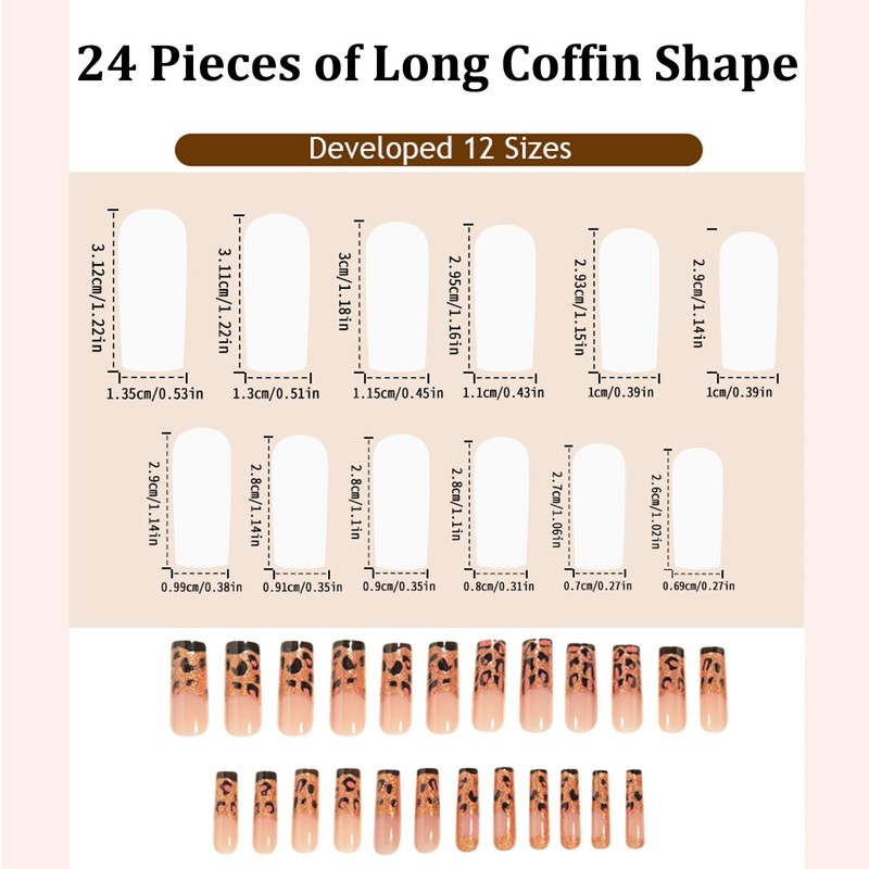 - 【Glitter Leopard False Nails】:24 pieces of press on nailsfrench tip look charming and elegant for your daily styles and date nights.12 different sizes of extra long stick on nails can meet all your needs for nail decoration and make your nails glamorous