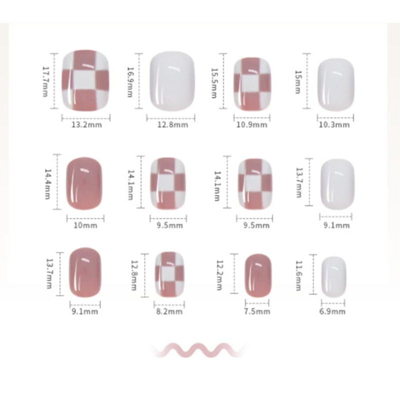 24pcs Cute Nail Tips Grid Pattern Milky White Light Purple Removable Nail Tips