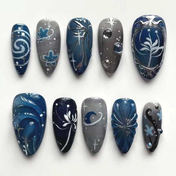 - Various Occasions: These blue 3d almond nail designs can make you stand out at parties, dates, weddings, proms, and Christmas. You can wear them on Prom, Party or any excellent occasion, nice gift for women. It fits any DIY Nails Art, Family Day or prepare for dating.