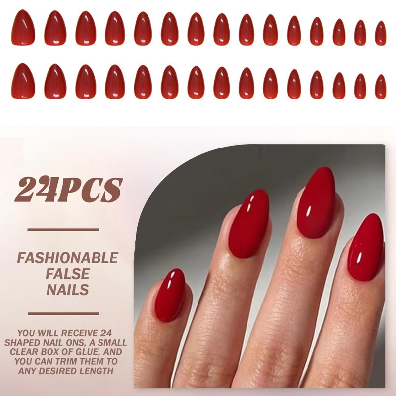 - 🌸 [Deep Red Elegance] Experience the luxurious look of deep red almond-shaped press on nails that perfectly mimic natural nails with a comfortable curved fit. These short fake nails provide a finish without any glue mess, offering an instant salon-quality manicure in minutes. The durable ABS acrylic material ensures long-lasting wear for up to 3 weeks.