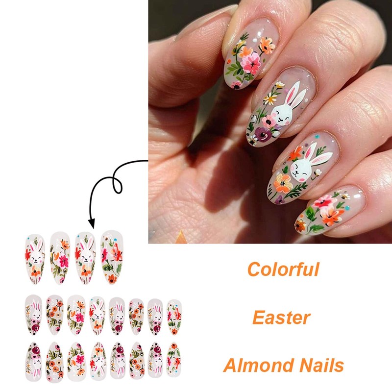 - 【Easter Press on Nails】The designs of Easter fake nail pieces are very rich, from rabbit and flower shapes to colorful eggshell chicken patterns, which can meet the needs of different people. Through the combination of different colors, patterns and patterns, you can create a spring and progressive Easter atmosphere