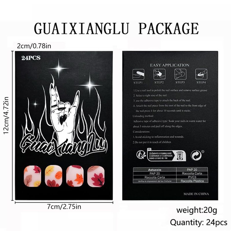 - 【High Quality】-- Autumn fake nails are made of high quality acrylic material, which is more glossy, firm and unbreakable, durable and elastic. It can be modified to better suit your nail shape, and the use effect is comfortable and natural.