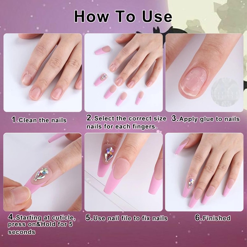 -Artificial fake nails with jelly glue, won't hurt your nails.