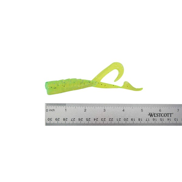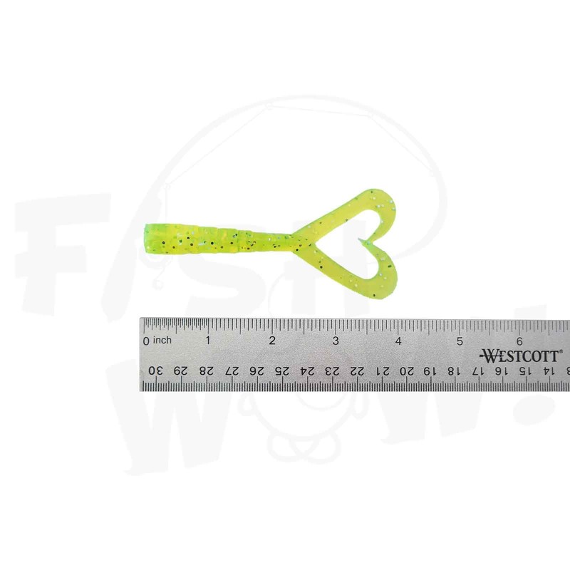 24pcs Fish WOW! Extended Size 5 inch Twin Tail Perch Grub 4" Scampi Soft Lure - Chartreuse Green