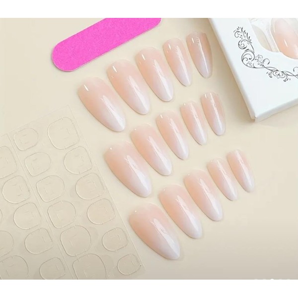 24pcs French Ombre Almond Press-on Nails, Medium Length Full Cover, Glossy Finish with Adhesive Tabs