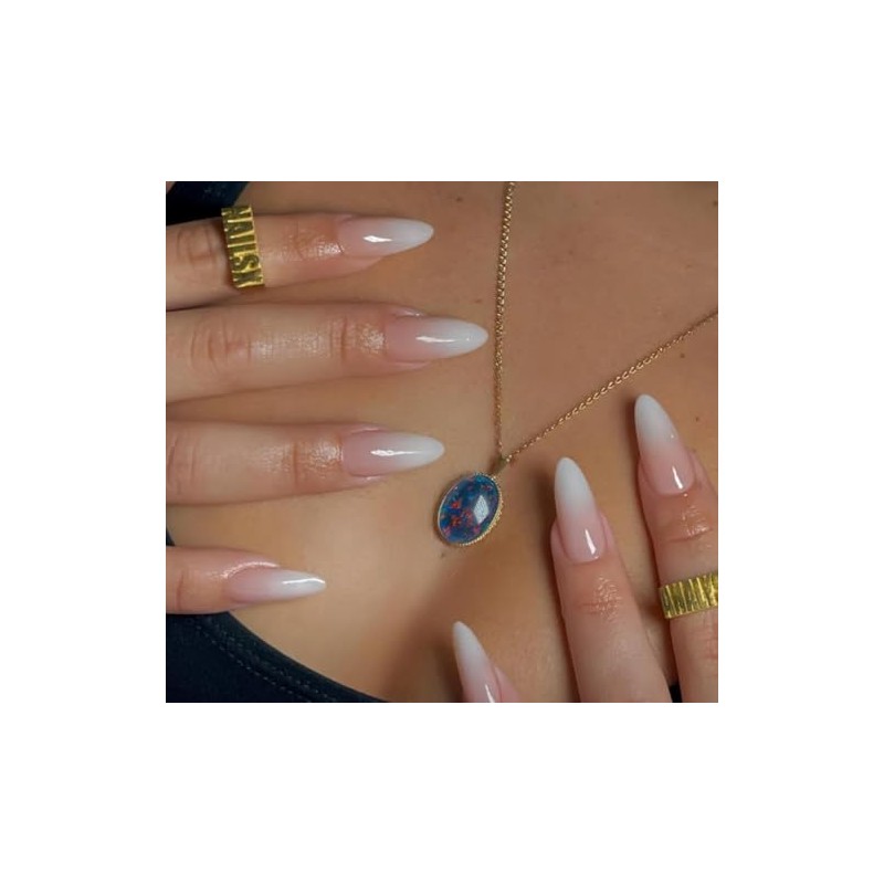 - COMPLETE SET: 24-piece almond-shaped press-on nails with French ombre design, includes adhesive tabs for easy application and long-lasting wear