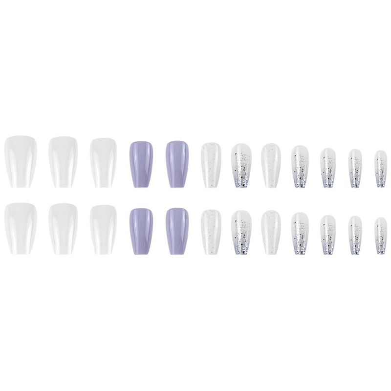 - Unique Design: French tip false nails are printed with purple bling sequins patterns, creating more joyful atmosphere, exquisite and beautiful, achieving the nice decorative effect, which will make you more attractive and eye catching