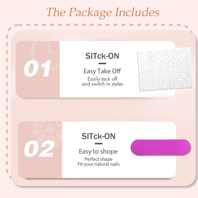 - [Quick & Easy At-Home Manicure] No need for salon visits—these press on nails allow you to achieve a professional manicure in minutes. The stick on nails come pre-glued for an effortless application, making them an ideal choice for a fast and hassle-free beauty routine.