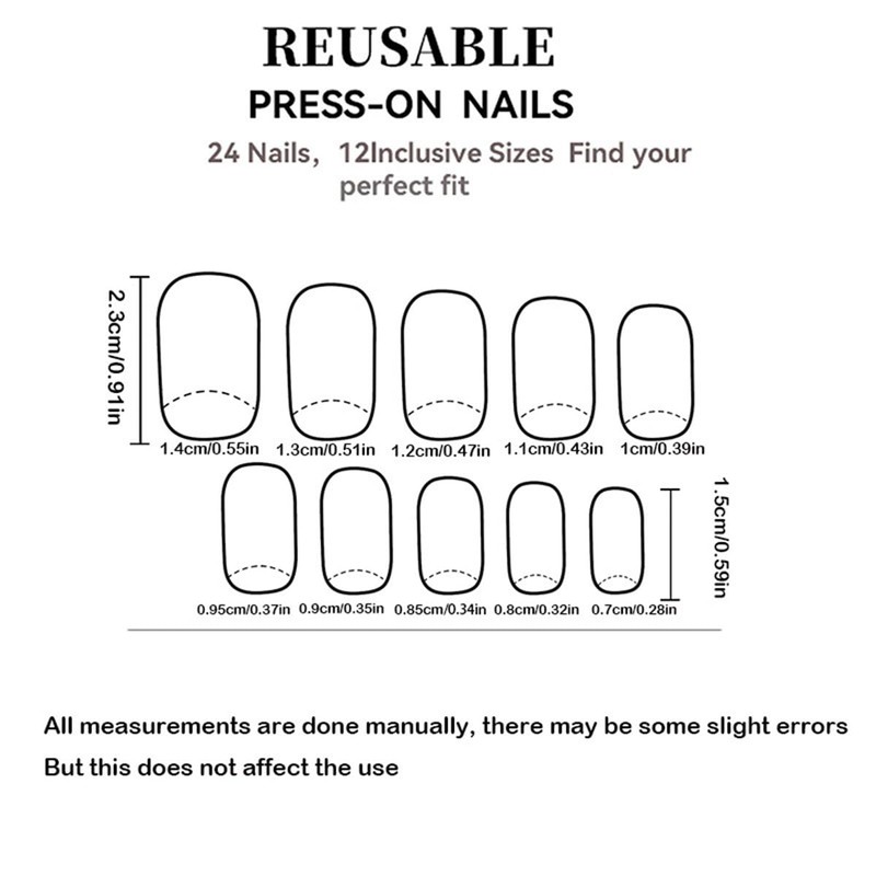 - 【Super Easy to Use】:Using press on nails with jelly glue, the perfect replacement for nail polish, no need to wait for drying, and only takes a few minutes to get the same professional effect as a nail salon