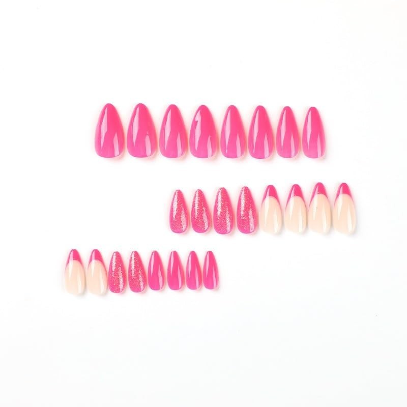 24pcs Full Cover False Nails Hot Pink Medium Almond Press-On Nails Bold Hot Pink Almond Nails With Glossy Finish Perfect For Parties Dates Or Daily Glam Easy Application No Damage