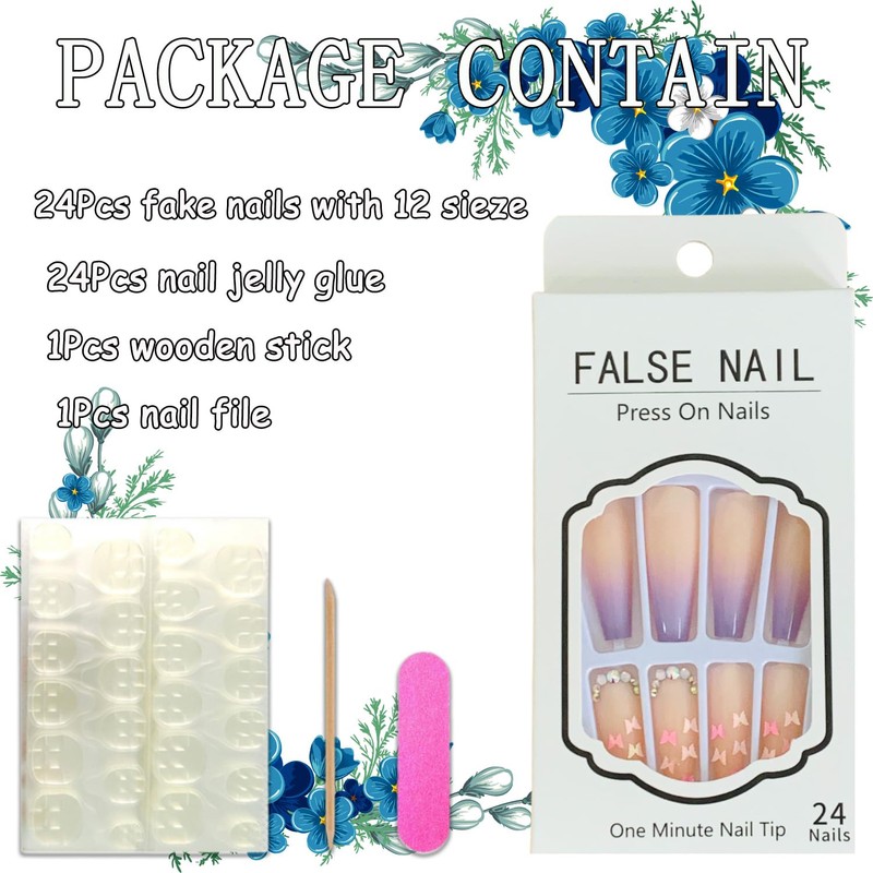 - Great Value: The package contains 24 pieces of false nails of different sizes, 1 mini nail file, 1 small wooden stick, 1 piece of nail glue sticker, giving you plenty of nails to use for multiple occasions.
