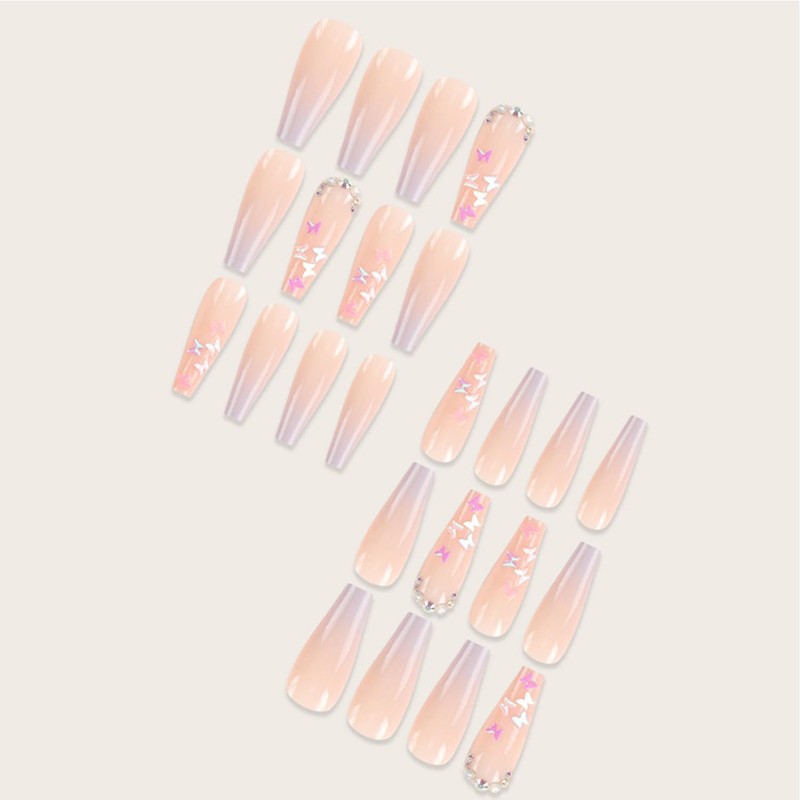 - Eye-catching Design: Beautiful purple gradient nails with pink butterfly flake patterns and rhinestone that will make you stand out in any occasion.