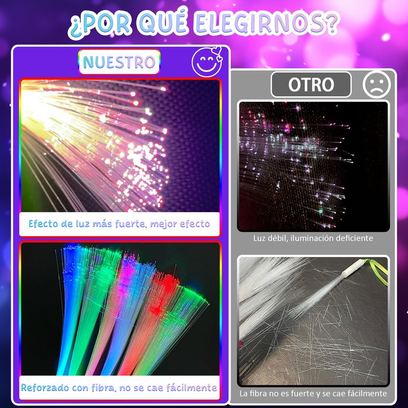 - 💜【Amplia aplicación】Varita de Fibra Óptica es ideal para diversas actividades, ya sea un concierto, una fiesta de cumpleaños, una boda, un evento en un club, un carnaval o un festival, creando un ambiente alegre. También se puede utilizar para necesidades prácticas como la señalización de acampadas y la orientación nocturna.