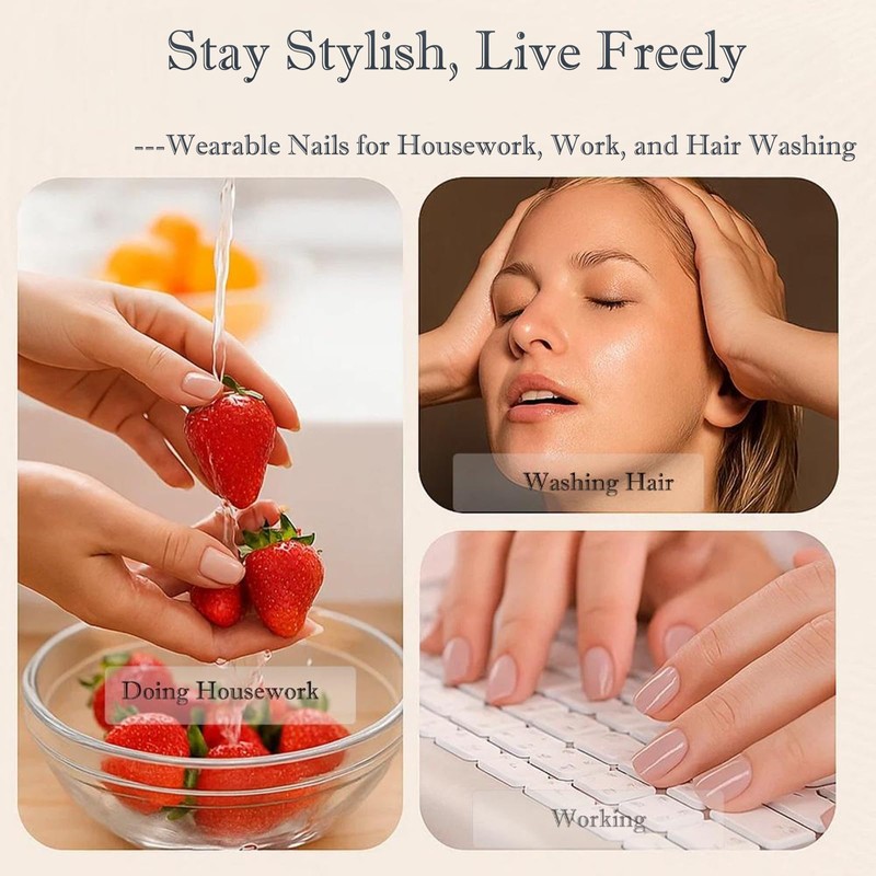 - 💫[Damage-Free Removal] Unlike harsh acrylics, these stick on nails can be easily removed without damaging your natural nails. The gentle formula allows for stress-free removal whenever you want to change your look, keeping your natural nails healthy underneath.