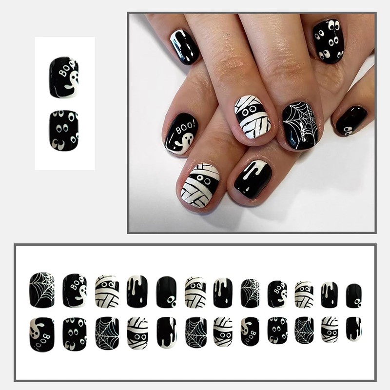 - Eco-Friendly:This cute mummy halloween fake nail is made of high-quality ABS material, non-toxic and odorless, you can rest assured that it will not cause harm to your body, providing you with a safe and comfortable nail experience.