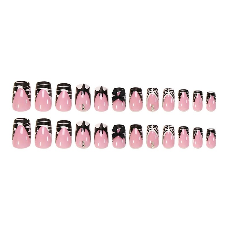 - Package Contains:A box contains 24 Halloween spider web french tips fake nails, a nail file and 24 jelly glues, an alcohol cotton pad,1 crystal stick,the fake nails are divided into 12 different sizes, it is convenient for you to choose the fake nails that suit your nail