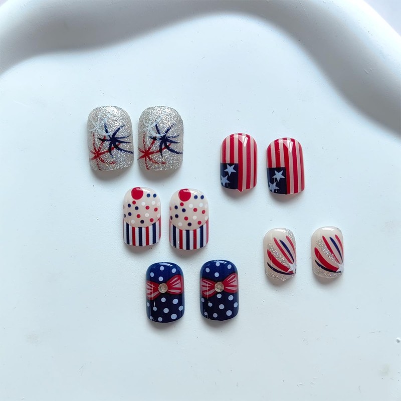 Item Type: Patriotic press on nails with design 4th of July firework fake nails